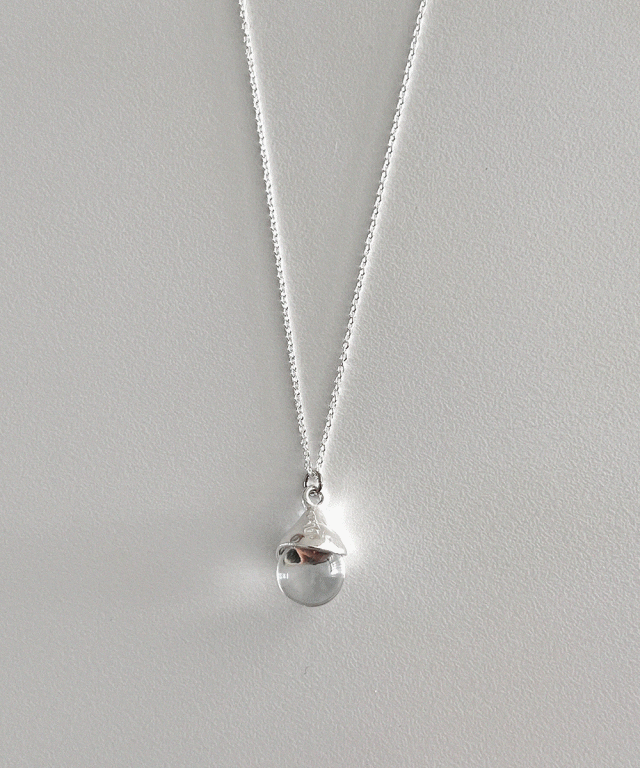 [국내생산] 실버 볼드 찌그러진 스몰 실버캡 투명 볼 펜던트 드롭 레이어드 롱 체인 목걸이