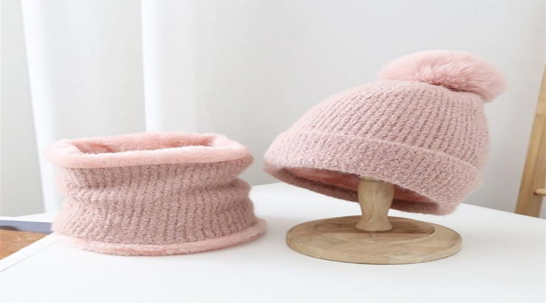 여성 퍼 니트 비니 워머 세트 목도리 모자 여자 겨울