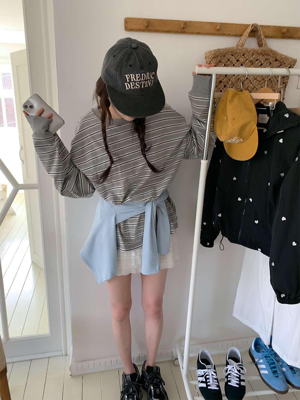 캐치 스트라이프 티셔츠 (2color) 오버핏 커플룩 단가라 긴팔티셔츠 에제다이어리