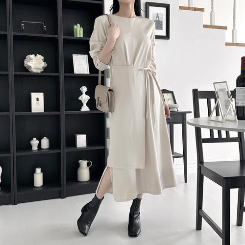 달타냥 봄 가을 하객룩 원피스 상견례옷차림 피로연 빅사이즈 피스룩 출근룩 세미정장 셔링 랩 롱 원피스 블랙 아이보리