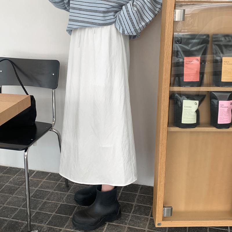 [러블리무드🌷/여리핏/데일리템]이와 코튼 밴딩 A라인 스트랩 롱 스커트 - 4 color