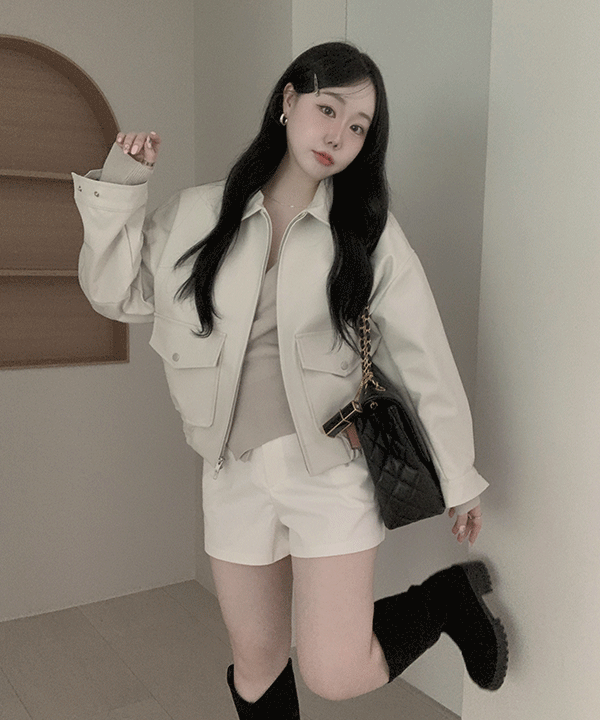 #13211 스타일리시 포켓 투웨이 레더 블루종 점퍼 : 아이,블랙 2color