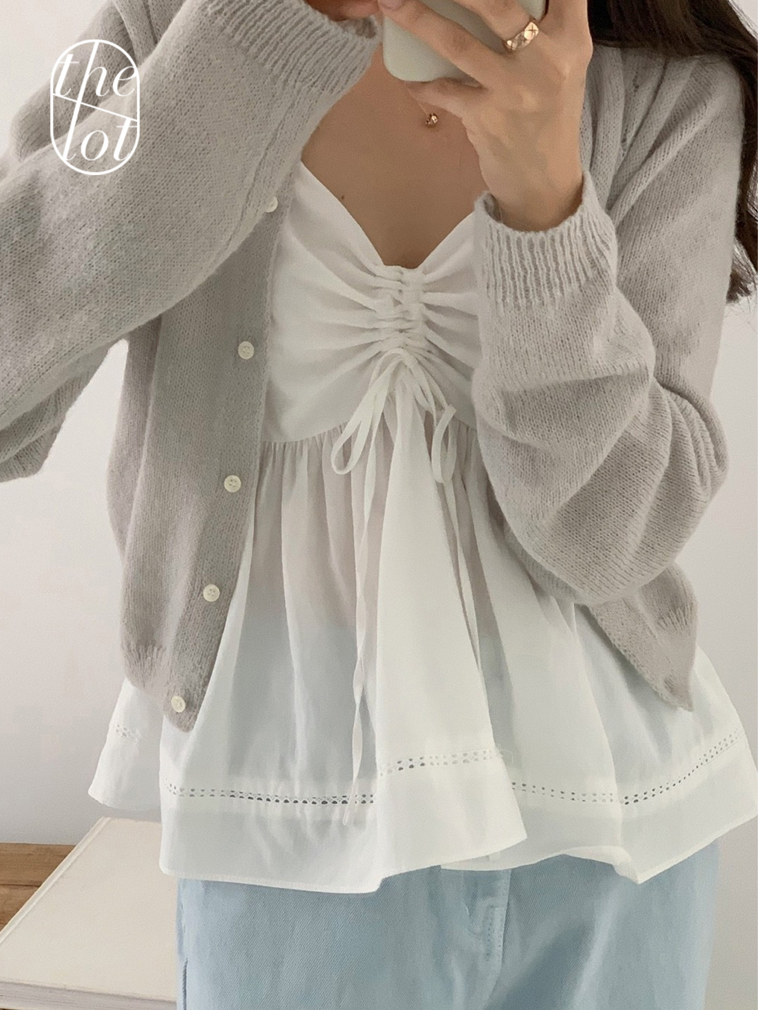 (당일) [liter] 리터 웬디 뷔스티에 셔링 레이스 스트링 레이어드 민소매 블라우스 (1color)