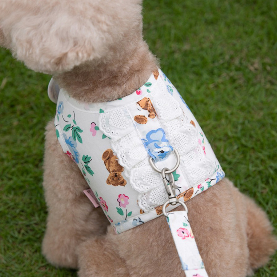 곰돌이 큐티 강아지 하네스 조끼 리드줄 포함