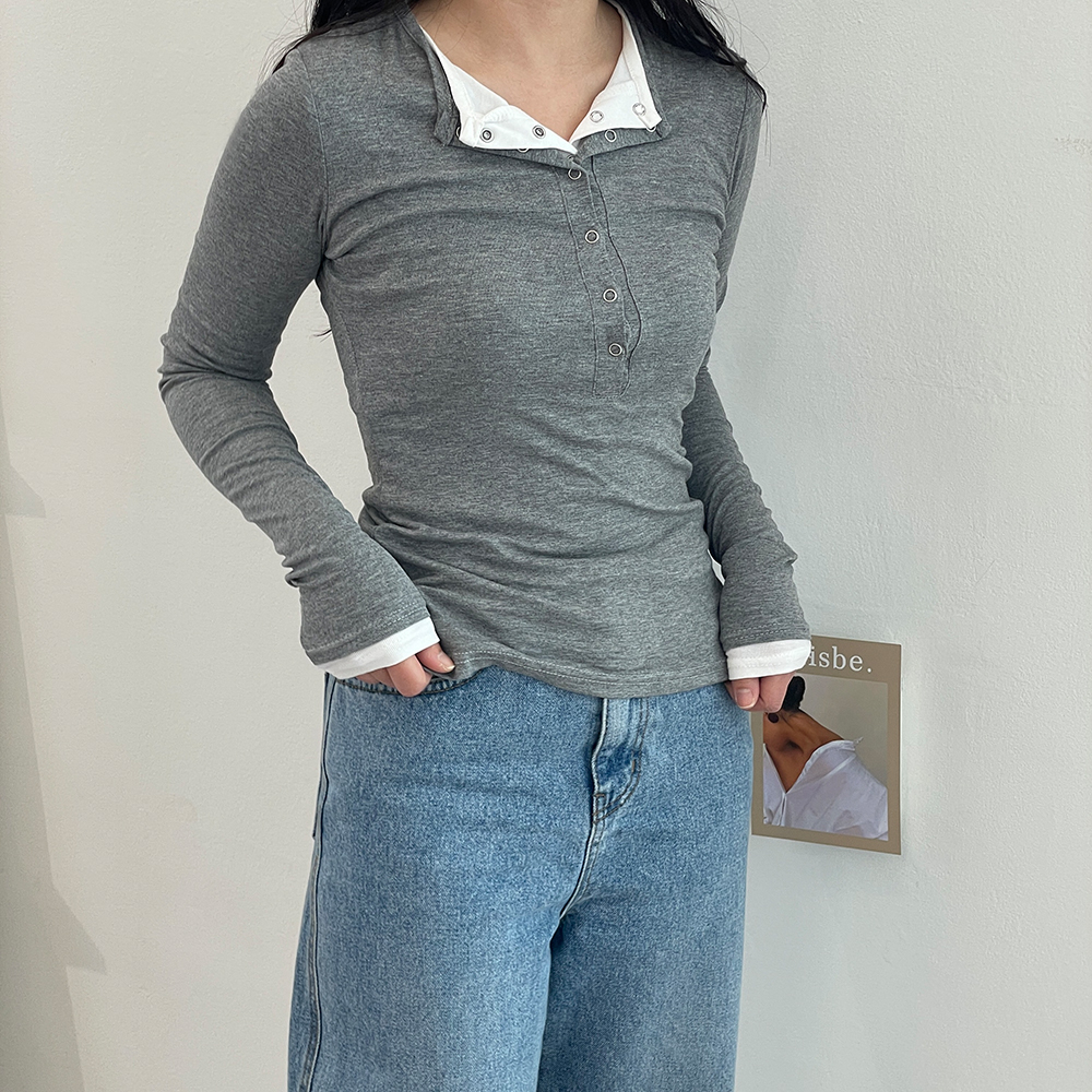 슬림핏 일체형 레이어드 스냅 버튼 긴팔티_2color