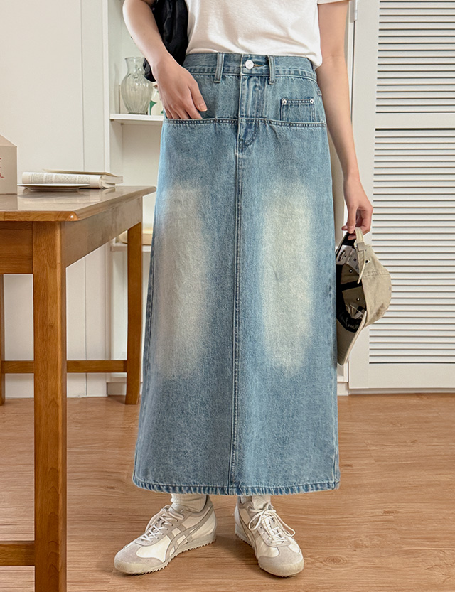 라플란 뒷밴딩 맥시 데님 스커트 80970