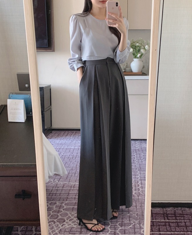 [🤍하객룩/바지/와이드팬츠] 원턱 플리츠 와이드 슬랙스 팬츠