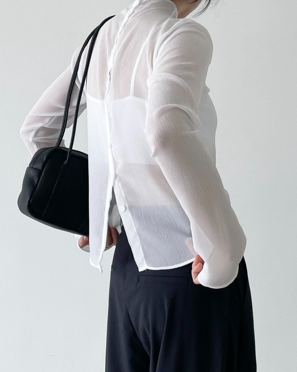 레잇 백버튼 쉬폰 블라우스 [3co] *아이보리 당일발송