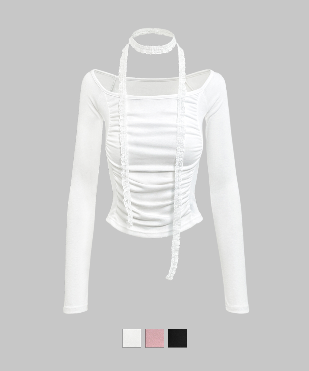 레이스 스키니 스카프 & 셔링 티셔츠 세트 LACE SKINNY SCARF & SHIRRING TEE
