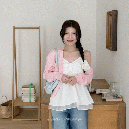 [끈조절] 투유 리본 슬리브 끈 나시 레이어드 블라우스 bl / 봄 여름 프릴 뷔스티에 쉬폰