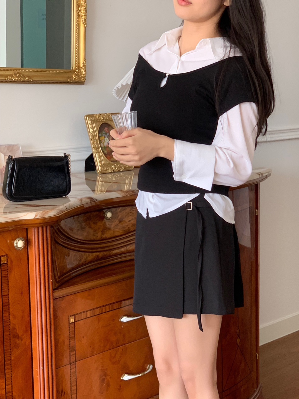 [바지안감] 팬츠스커트 세미A라인 미니스커트 버클 치마바지 (데일리룩/하객룩/데이트룩/데이트룩)