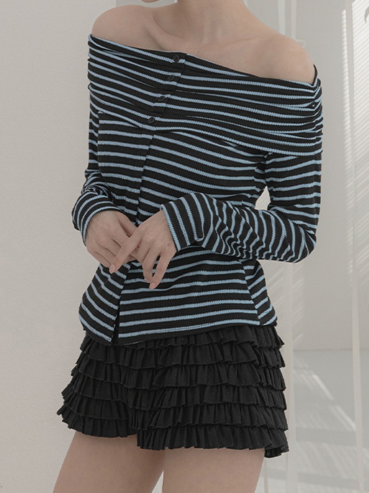 [청순여리❣/체형커버][44-120] 오에빈 스판 스트라이프 오프숄더 티셔츠 (신상-봄-가을-데일리룩-데이트룩-출근룩-오피스룩-러블리룩-캠퍼스룩-모던룩-빅사이즈-120사이즈-자체제작-여리핏-신축성)