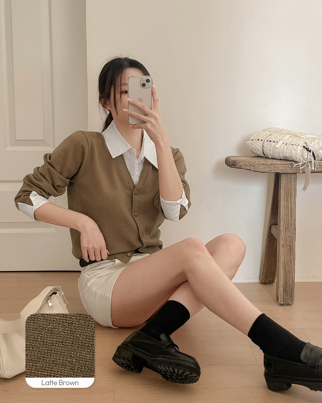 [무료배송🚚]진스 셔츠 레이어드 니트(세트상품 니트가디건 브이넥가디건 셔츠 레이어드룩 데이트룩 하객룩 출근룩 데일리룩 청순 레이어드가디건 셔츠가디건 모임룩)