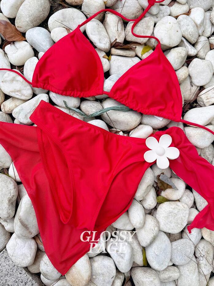[4pcs] 로즈 홀터넥 무지 볼레로 비키니 / 신혼여행 스커트 가디건세트 스윔웨어 수영복