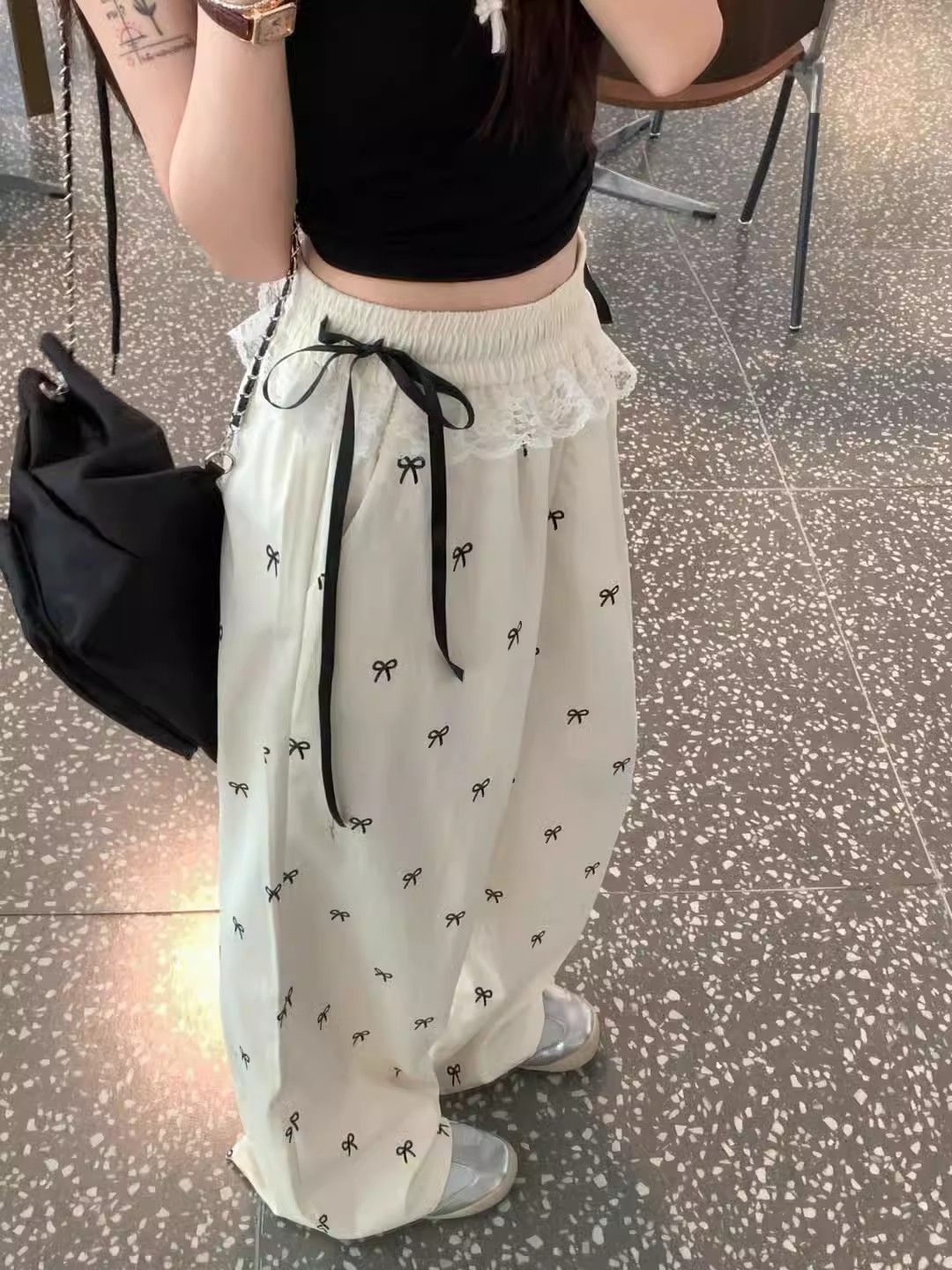[포인트룩❣/바스락] 포에 리본패턴 레이스 나일론 팬츠