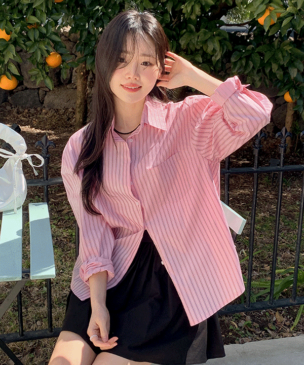 [단독][MADE][자체제작]에이드 오버핏 스트라이프 셔츠 (2color)[오버핏 셔츠][핑크][스트라이프][개강룩][여행룩]