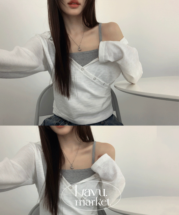 팔뚝 삭제핏! 슬라브 딥브이넥 루즈핏스냅 단추 후드 셔링 크롭 긴팔티 3color [말라핏/후드티/여유핏/여리핏/레이어드티/오프숄더/슬라브티]