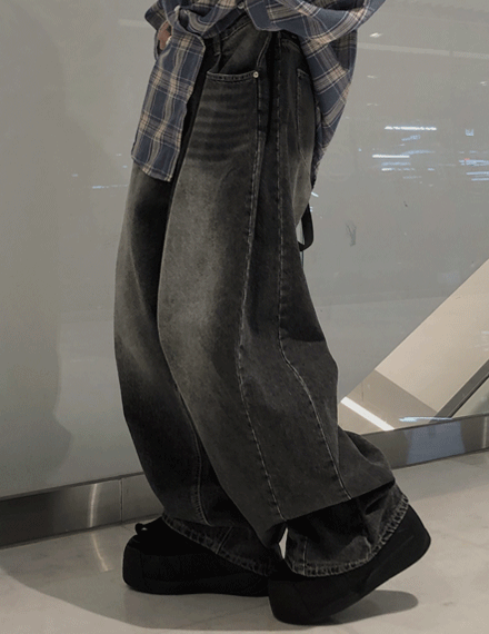 [유니크/와이드핏] 페리오 사이드 핀턱 워싱 데님 팬츠