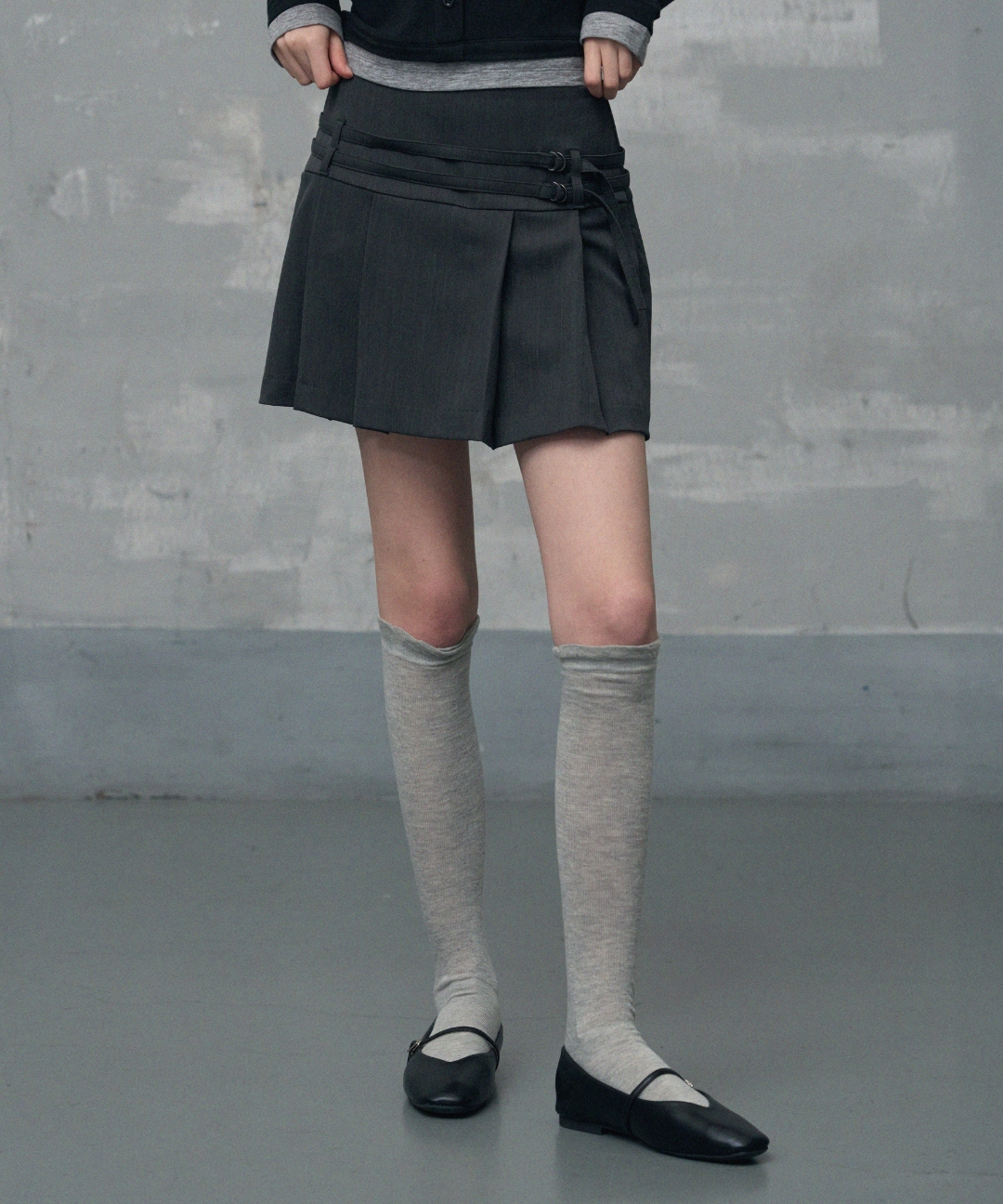 더블 스트랩 플리츠 미니 스커트 [2COLOR]