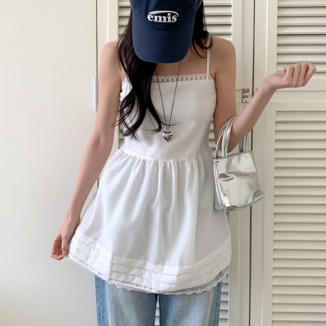 [끈조절O/레이어드] 태린 레이스 프릴 핀턱 뷔스티에 청순 밴딩 끈나시 미니 원피스