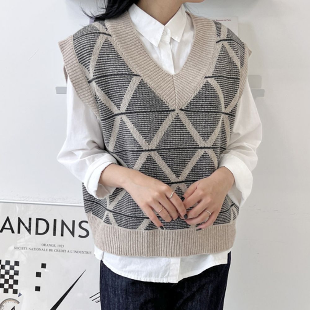 니트 울 셔츠 조끼 여자 오버핏 캐주얼 포멀룩