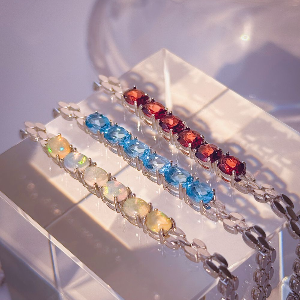 [당일출고/천연 보석]925silver 블루토파즈 가넷 오팔 천연석 그레인 체인 팔찌