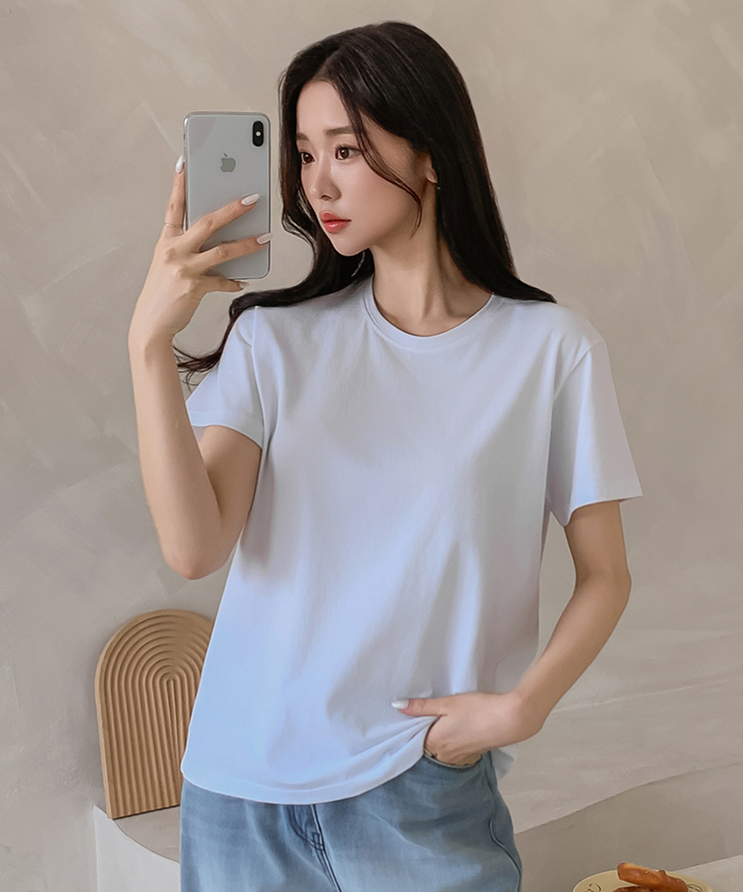 [MADE/모달반팔/질좋은티] 쫀쫀탱탱 모달 부드러운 기본티 반팔 베이직 이너 티셔츠 면 데일리 레이어드 라운드넥 봄 여름 가을 겨울 사계절용 흰색 무지 국내생산 자체제작