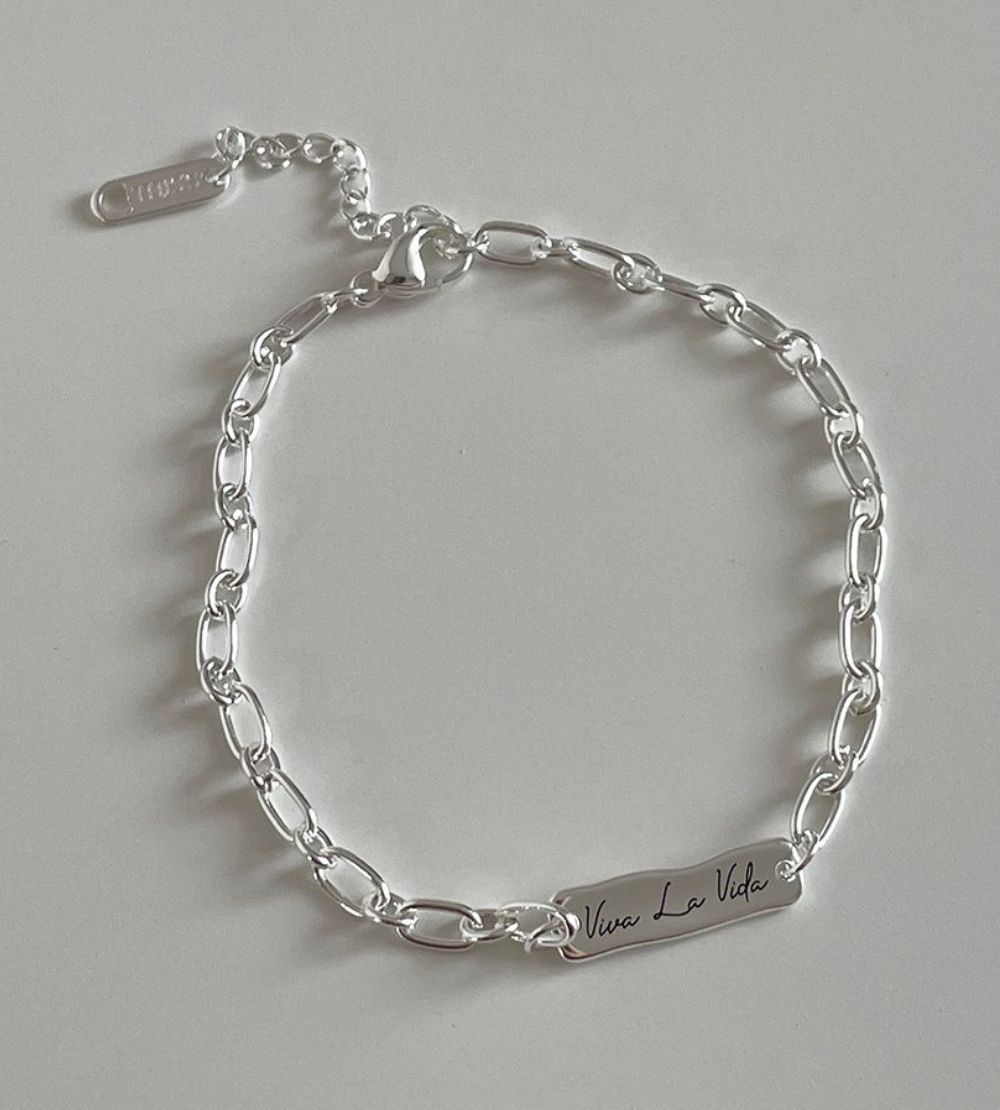 [써지컬/레터링각인] 버닝 팬던트 볼드 체인 실버 우정 커플 팔찌 (one color)