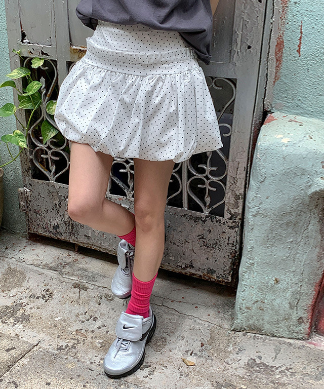 이리얼 도트 벌룬 셔링 미니 스커트