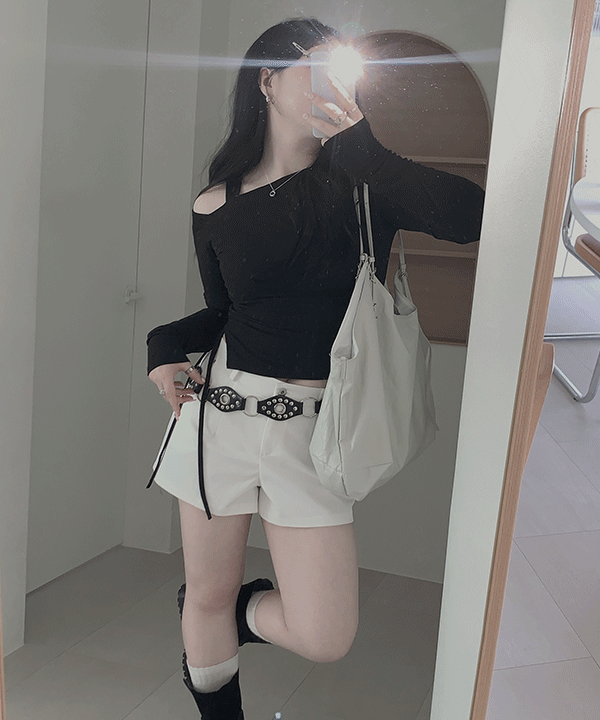 #13214 [머플러SET] 은근섹시 슬림핏 언발 어깨트임 오프숄더 셔링 긴팔t : 3color
