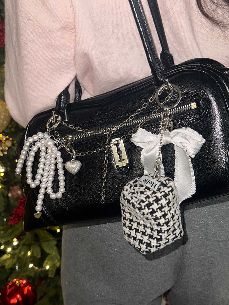 Tweed Black WhIte Mini Pouch 트위드 블랙 화이트 미니 화장품 큐브 파우치 키링