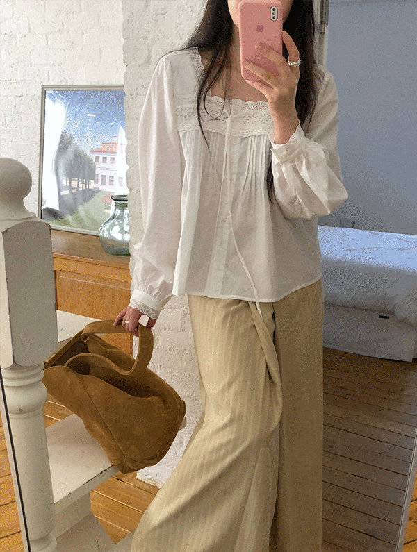 틸리 스퀘어넥레이스블라우스