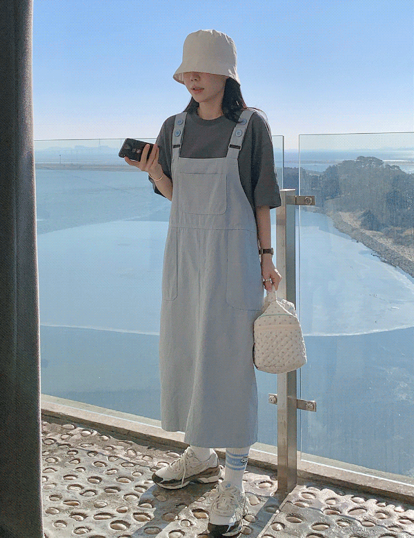 푸푸 단추 코튼 멜빵 원피스 (2color)
