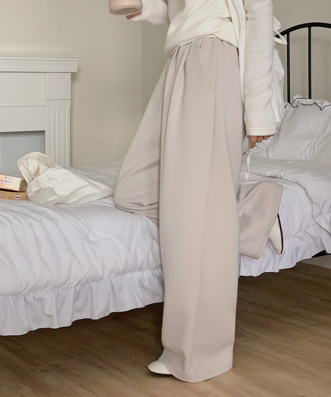 [2타입][컬러추가💗][폼폼쿠션지/소프트촉감][MADE] 라잇큐 쿠션 투핀턱 밴딩 와이드팬츠 (44~110) (링클프리-밴딩팬츠-밴딩슬랙스-트레이닝슬랙스-빅사이즈팬츠-체형커버)