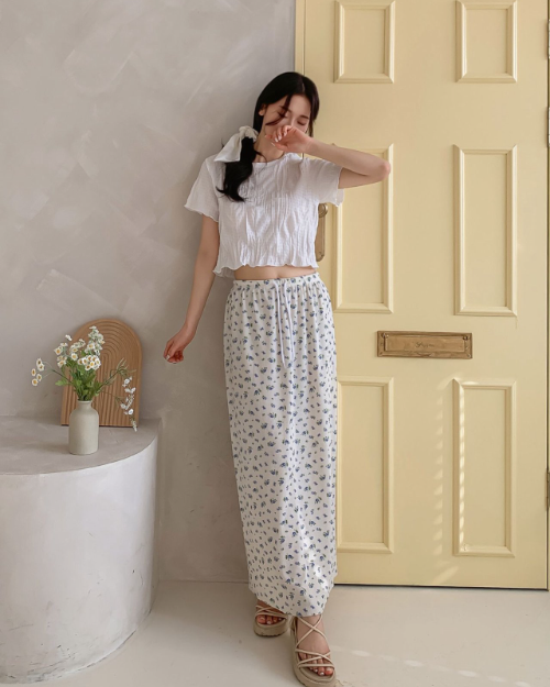 [주문폭주✨] 와플 꽃스커트 여름 밴딩 뒷트임 롱스커트 빅사이즈 임산부 비치웨어 H라인 스커트