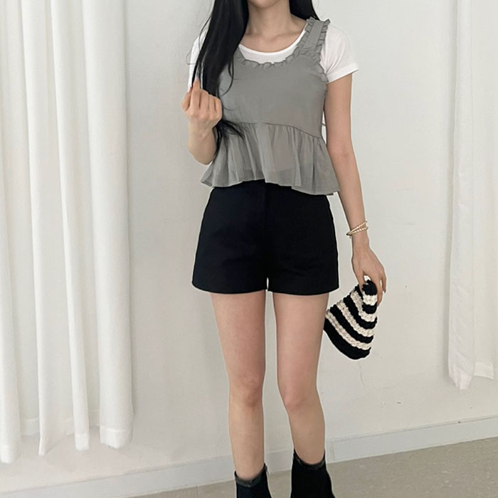 [레이어드나시/뒷단셔링/밑단프릴포인트] 돗드 리본끈 셔링 프릴 나시 블라우스