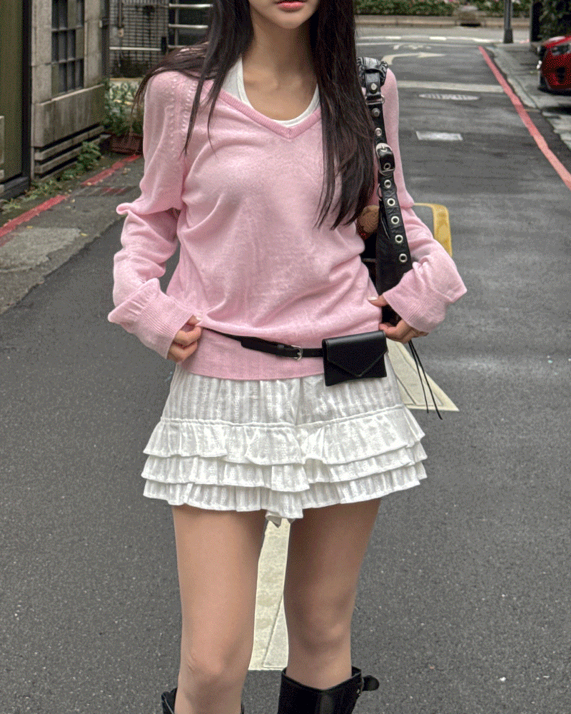 [얇은니트]히데 여리핏 루즈 딥브이넥 긴팔니트(4color)