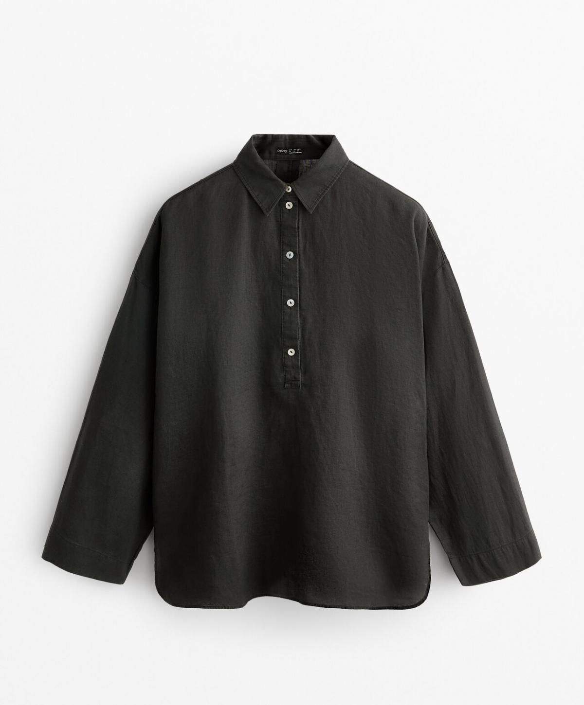 오이쇼 오버사이즈 린넨 긴팔 셔츠 1041/750 ANTHRACITE