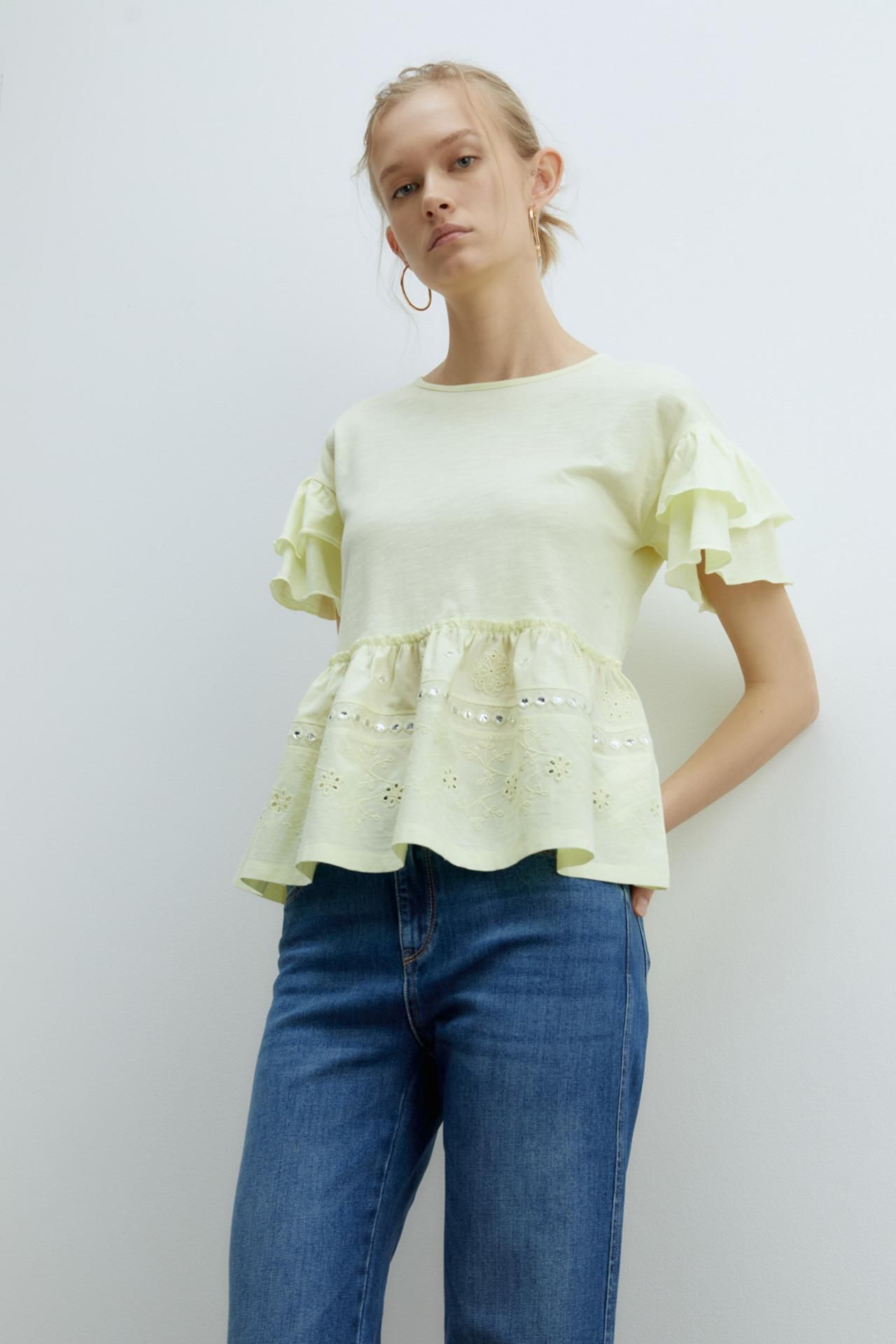 스페라 러플 자수 티셔츠 058461502328 AMARILLO
