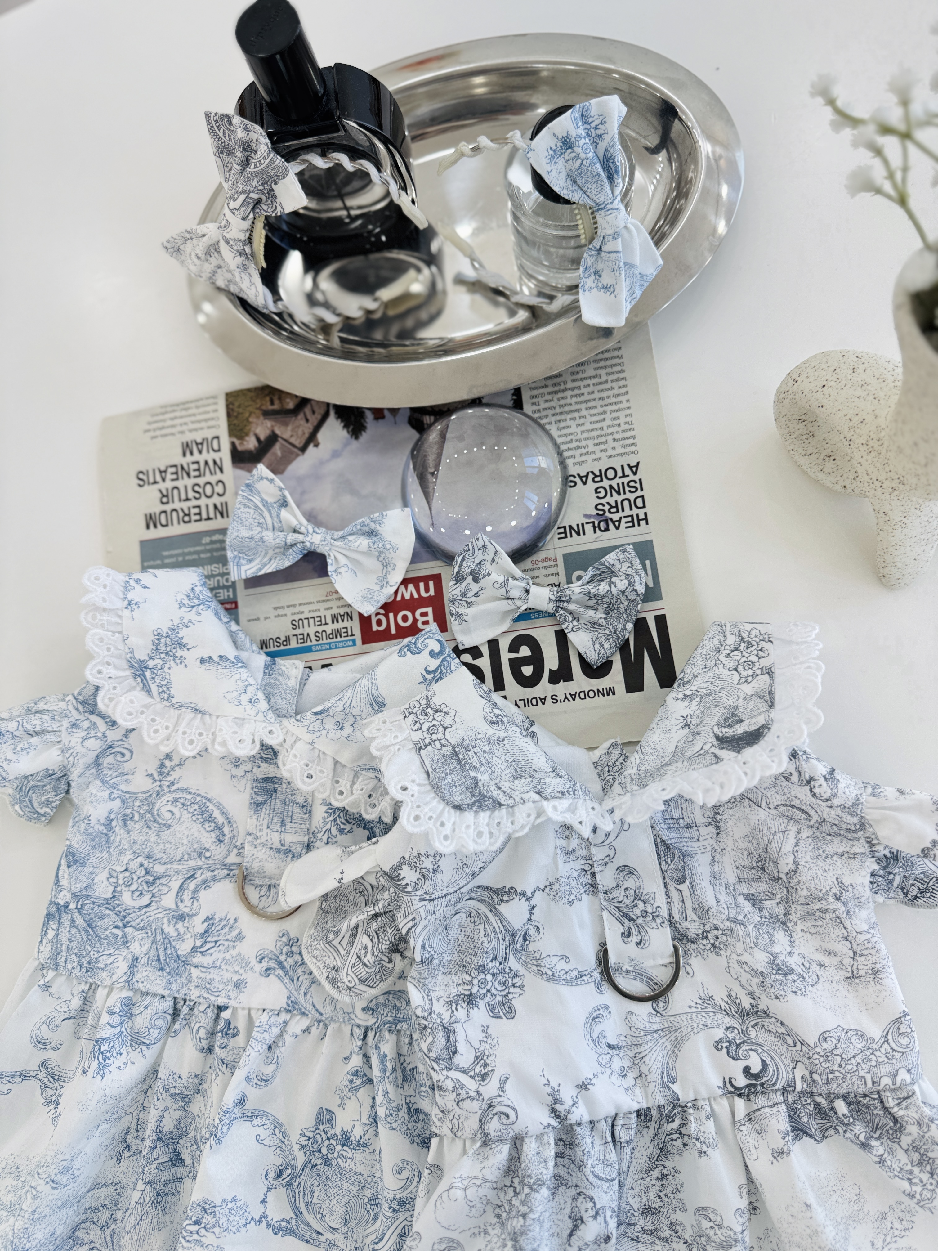 명품룩 강아지옷 르네상스 원피스 뜨왈드주이 드레스 하네스옷 강아지공주옷