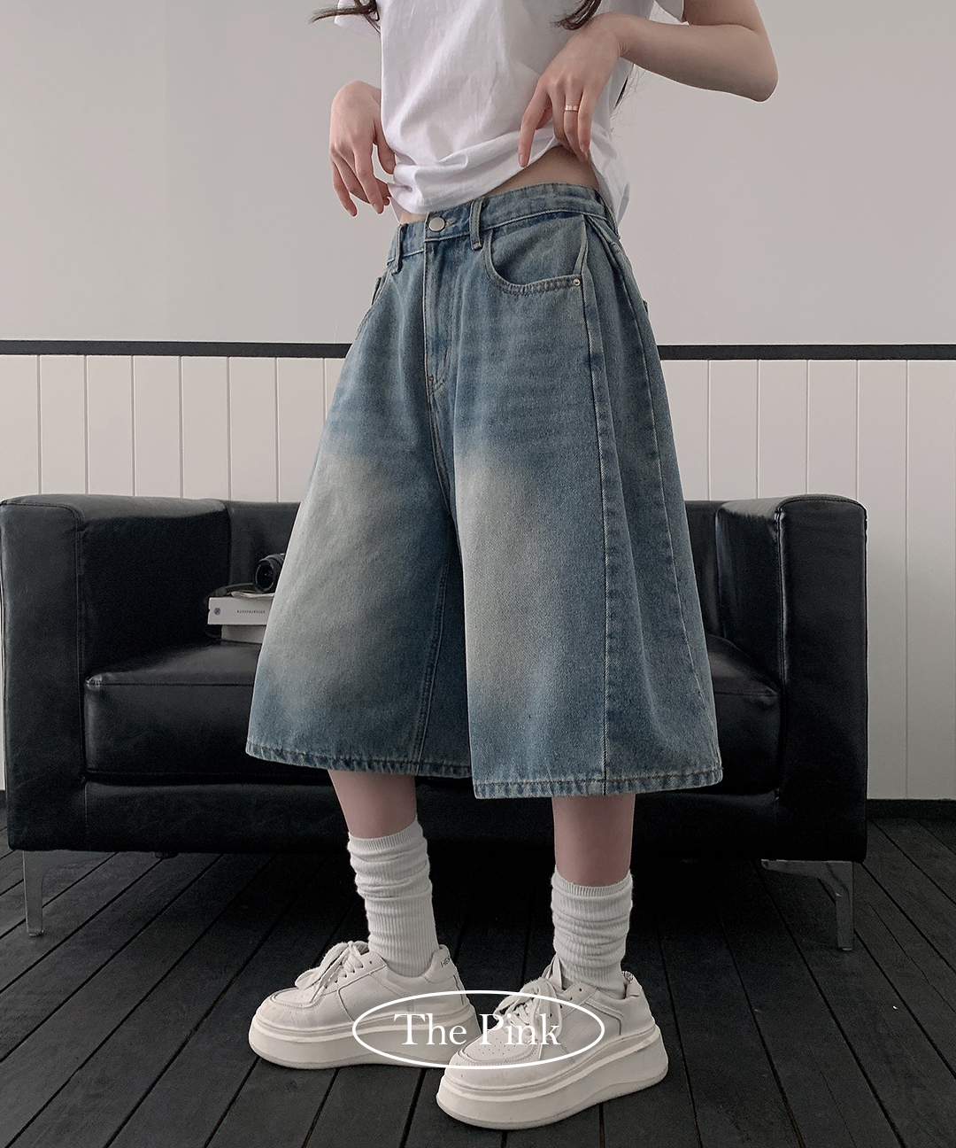 [🌴인기급상승/여름데님/숏,롱/핏존예/y2k] 터드 하이웨스트 옆 사이드 핀턱 워싱 버뮤다 벌룬 와이드 데님 팬츠 반바지 (5color)