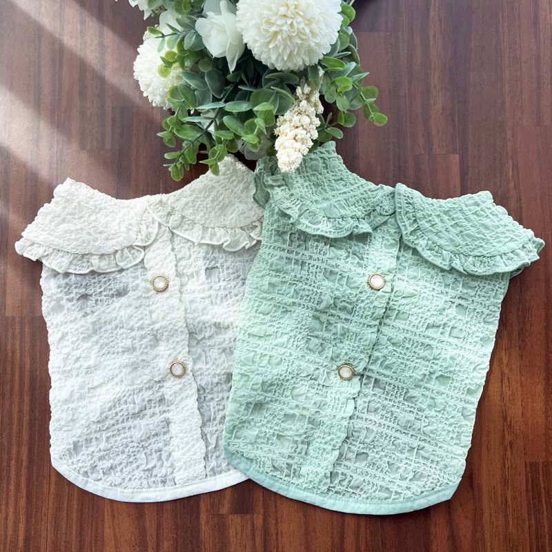 강아지 티셔츠 버블 쉬폰 프릴 카라 조끼 봄 여름옷 토끼독