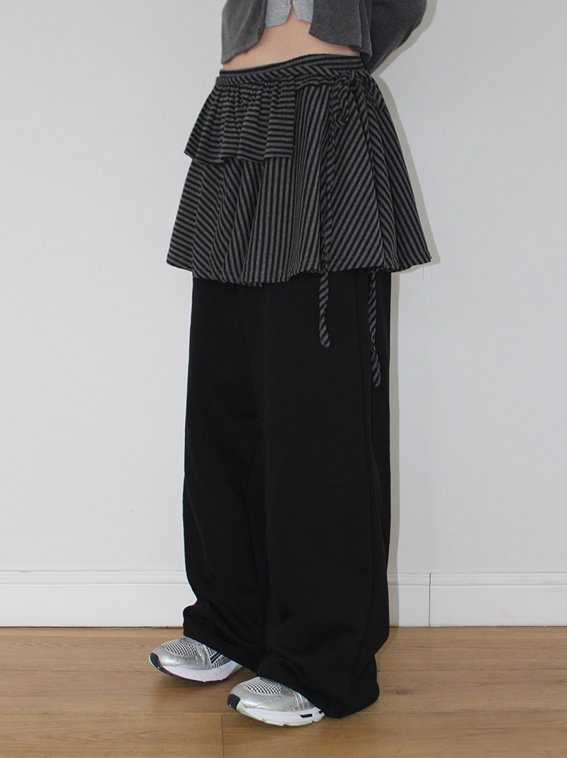 [SET] STRIPE FLARE SK/LAYERED PT (gray / black)