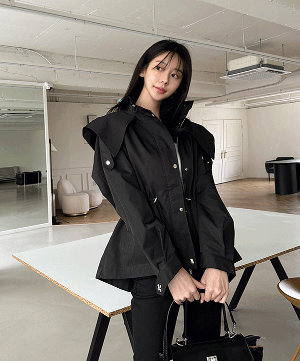 클로디 후드 스트링 오버핏 바람막이 야상 점퍼 – 가을 숏 아우터/윈드브레이커/루즈핏/데일리룩
