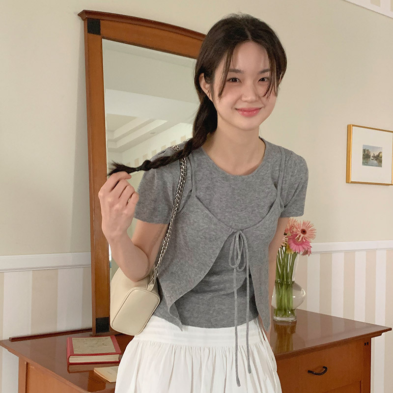 [💣빅 할인 블프 특가][3WAY/레이어드룩] 디아벨 리본 뷔스티에 반팔 니트 레이어드 세트 반팔니트,스웨터,뷔스티에,니트뷔스티에,레이어드니트,니트반팔,데일리룩,휴가룩,공항룩,데이트룩 st2802