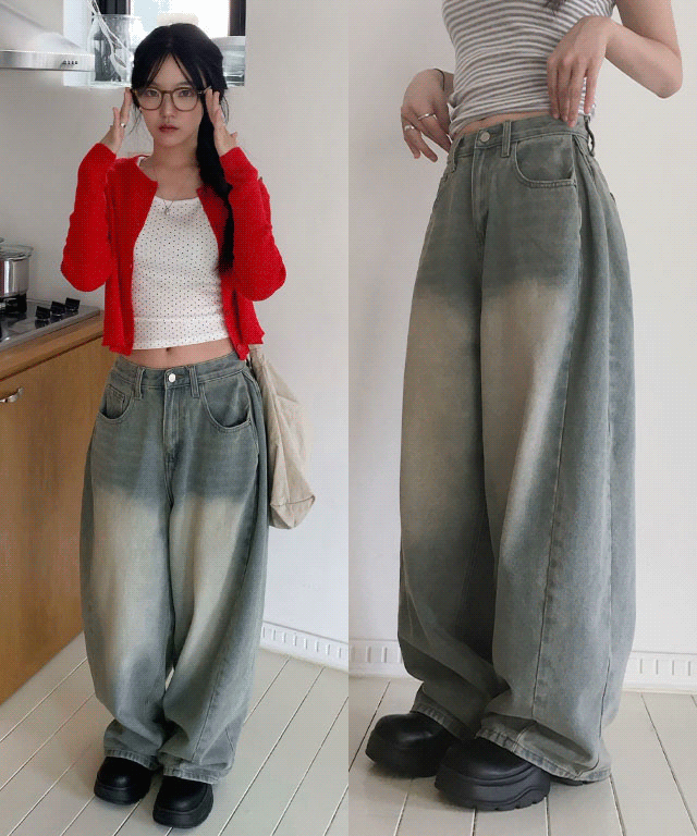 [숏,롱/S-XL/핏보장✨] 스태리 사이드 핀턱 와이드 빈티지 워싱 데님 롱 팬츠(2color)