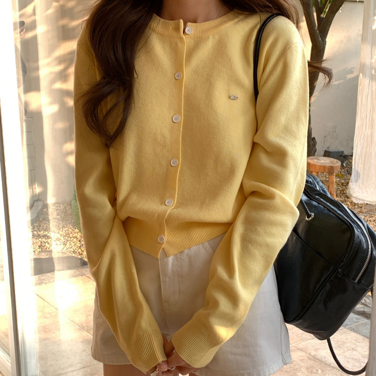 (당일출고/강추) 라운드넥 슬림핏 팬던트 와펜 크롭 골지 봄 트위드 니트 가디건 스웨터 자켓 하객룩 6color
