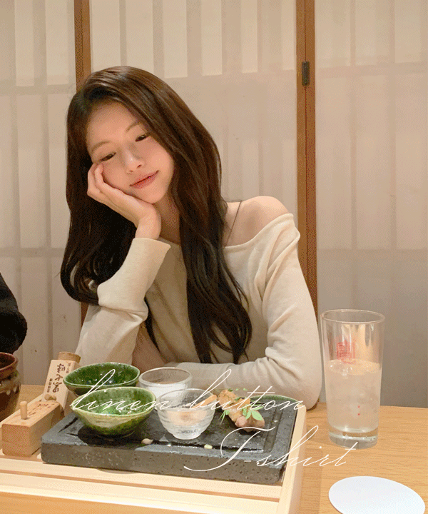 [무료배송][봄신상🌸/👼🏻모델소장👼🏻] 단독제작) 리넨 언발 오프숄더 트임 버튼 니트 티 - 3color