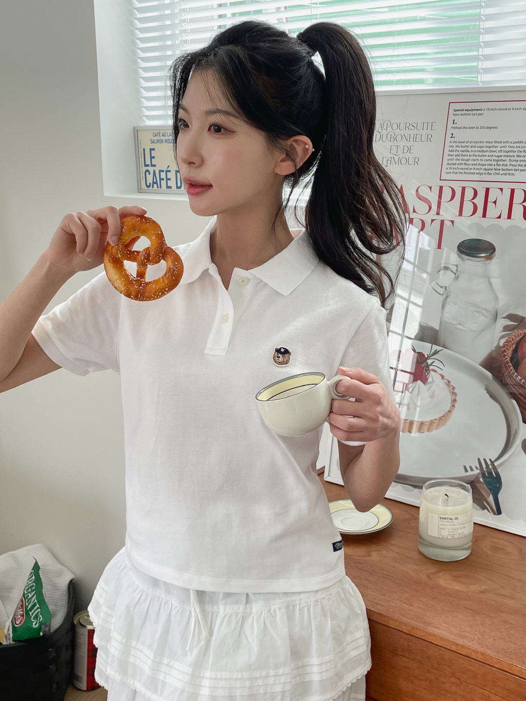 [25SS NEW] 스티브 크롭 반팔 카라 티셔츠(F) / WHHAF2411F