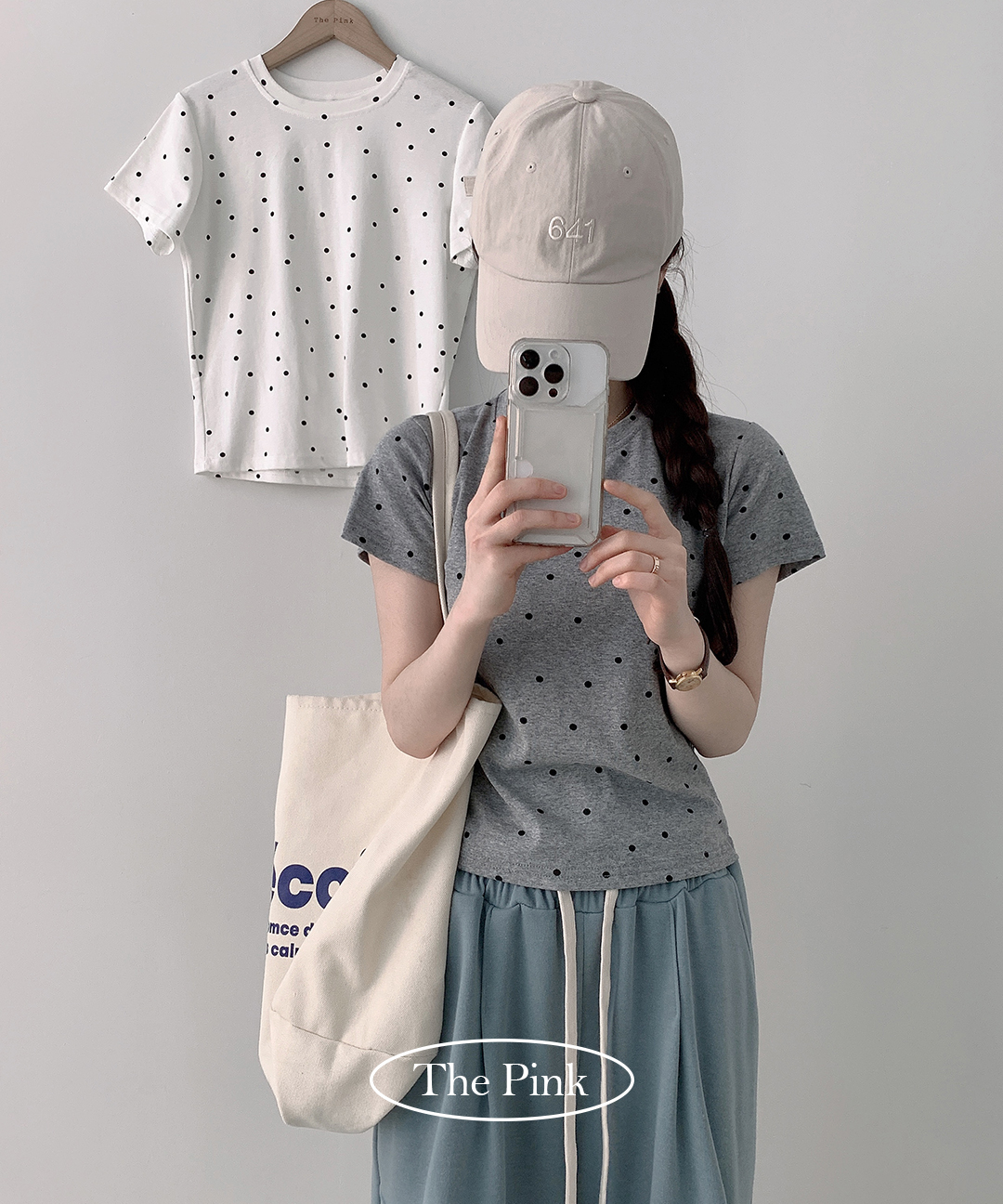 [러블리힙!/데일리] 안야 슬림핏 도트 세미 크롭 반팔티 (2color)